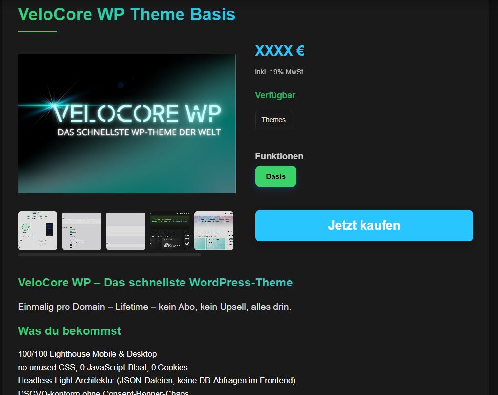 Das war’s. Kein Page Builder. Kein WooCommerce-Ballast. Keine Geschwindigkeitseinbußen.