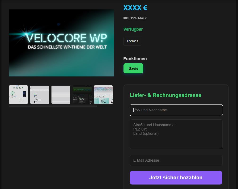 Kein riesiges Plugin. Keine 47 Abhängigkeiten. Nur ein schlankes, blitzschnelles Shopsystem – komplett in einer einzigen Datei. Mit wunderschönen Produktseiten, Galerie, Varianten, Stripe-Zahlung und Stock-Management.